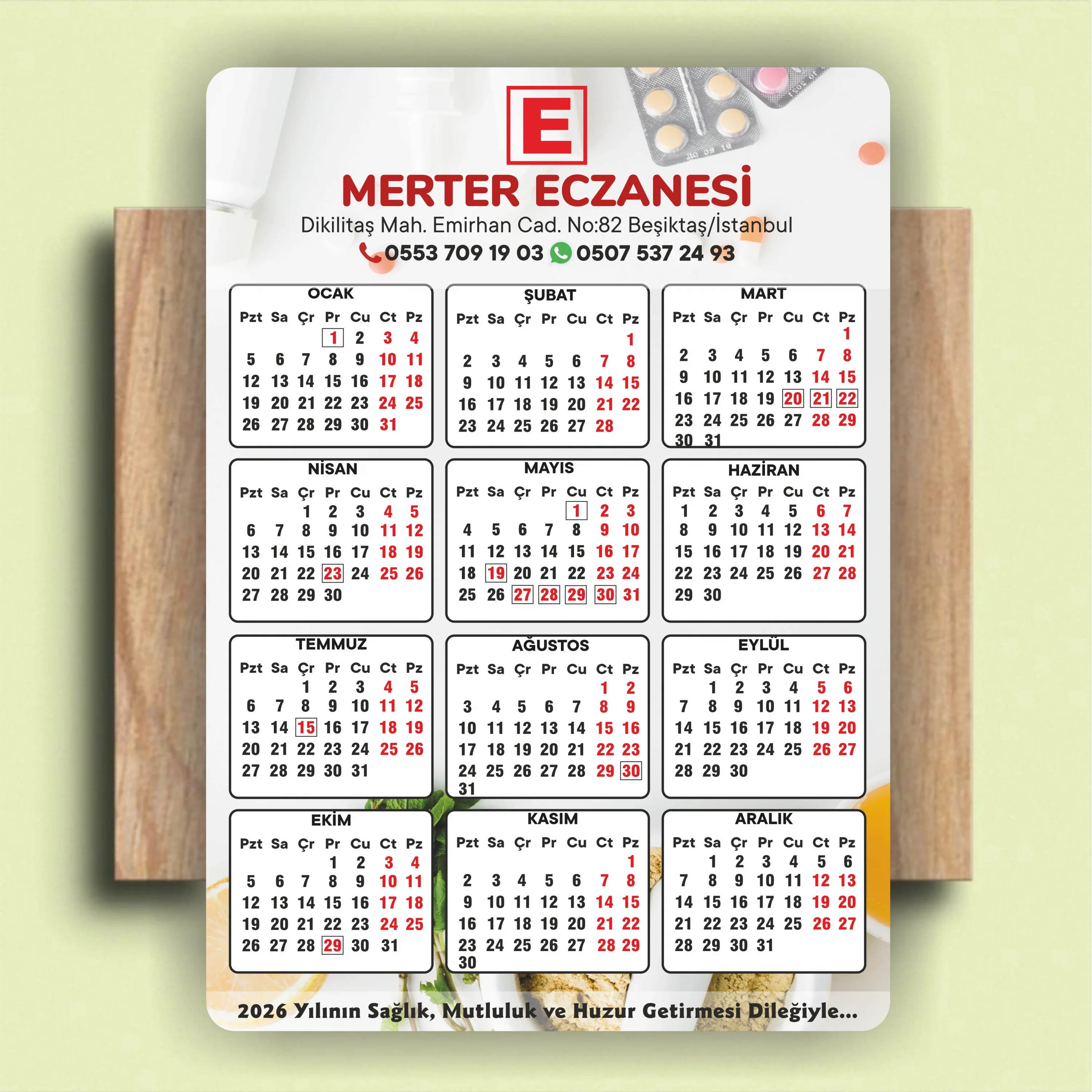 14x10 cm Eczanenize Özel 2026 Takvimli Magnet 1000 adet No:4