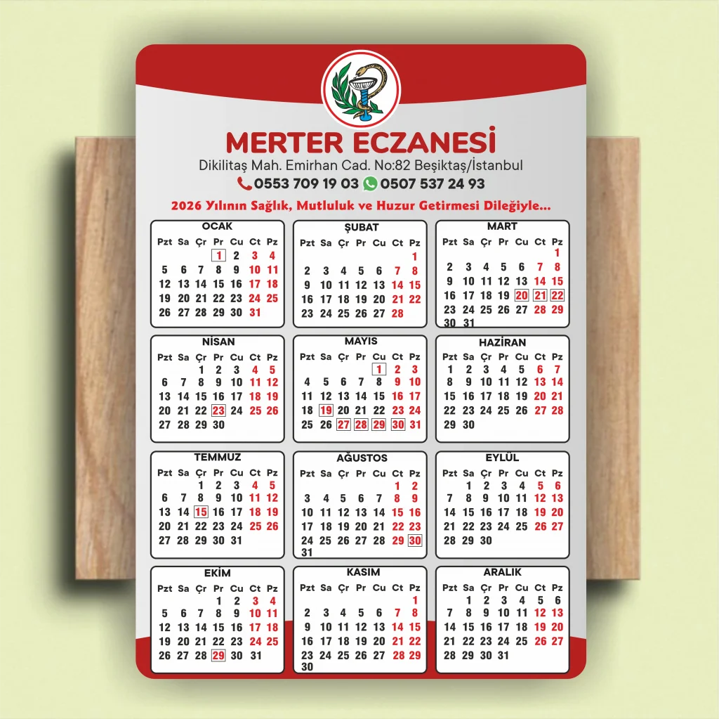 14x10 cm Eczanenize Özel 2026 Takvimli Magnet 1000 adet No:1