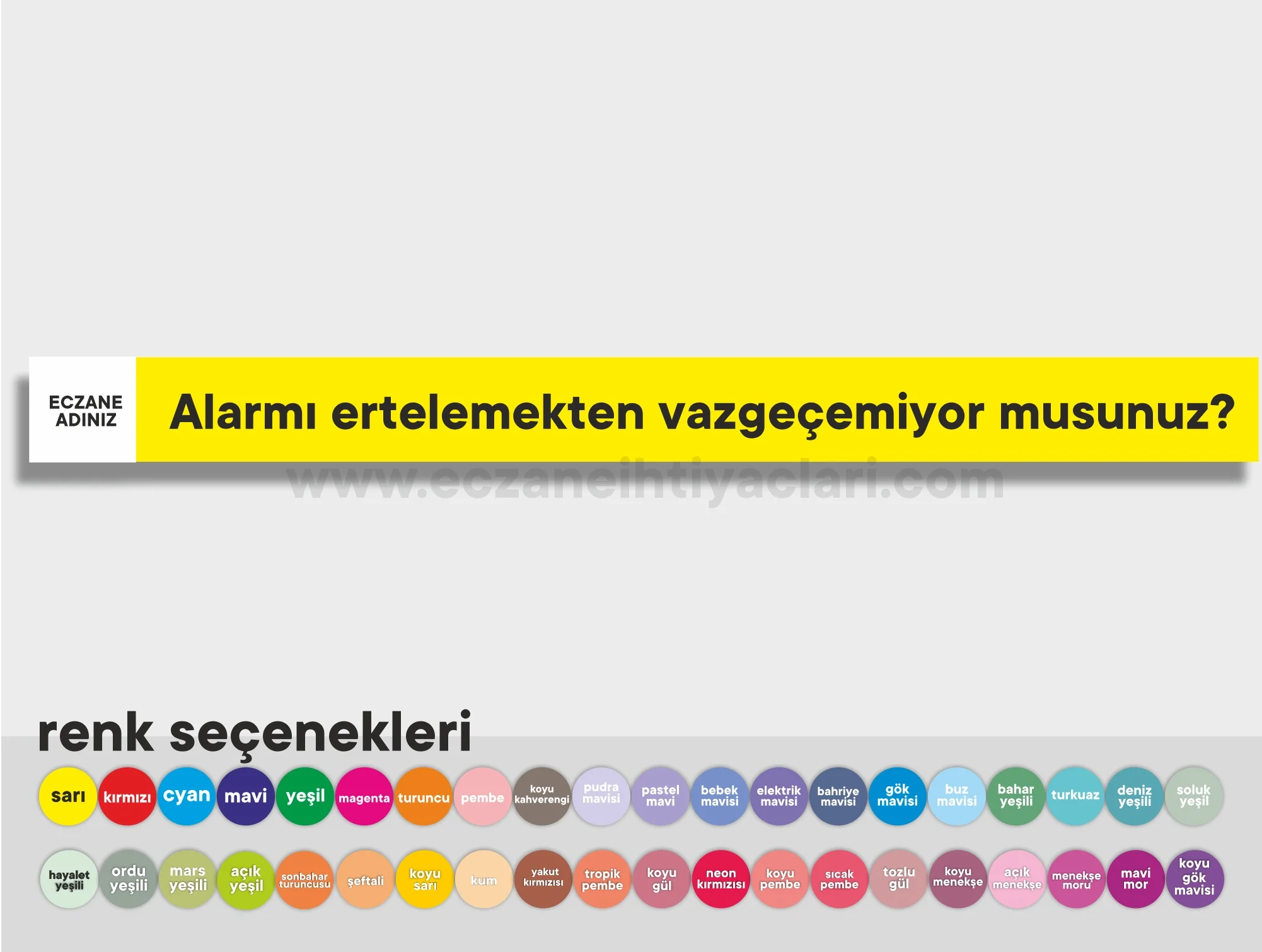 3.9x50cm ebatinda eczanenize özel raf yazısı, Raf boyutunuza göre istediğiniz ölçüde ve dilediğiniz renkte hazırlanabilir.