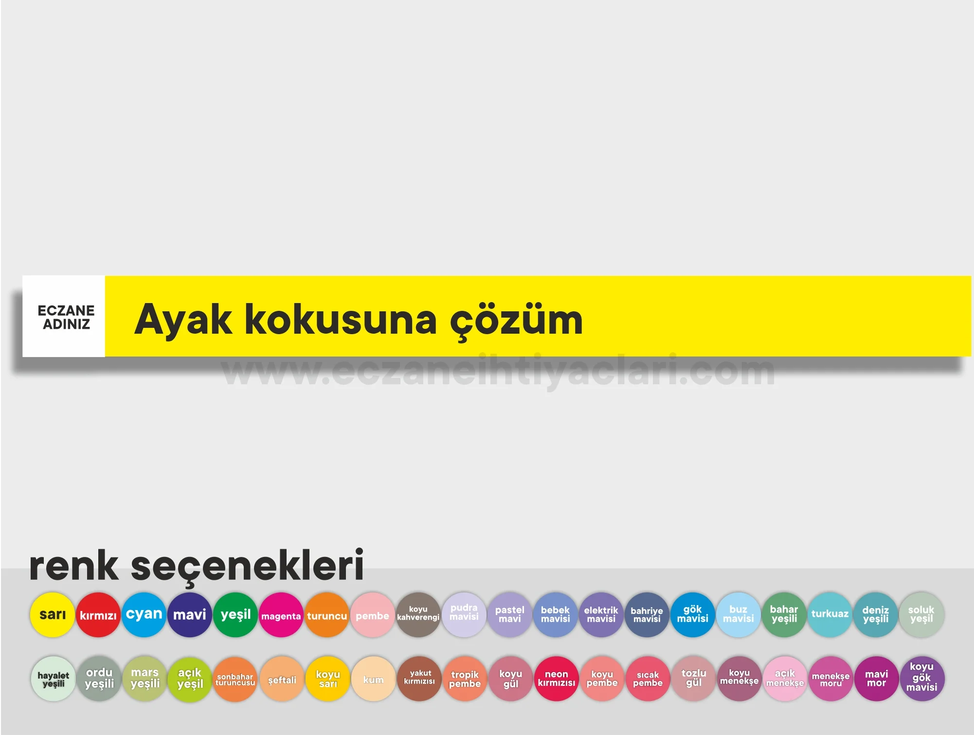 3.9x50cm ebatinda eczanenize özel raf yazısı, Raf boyutunuza göre istediğiniz ölçüde ve dilediğiniz renkte hazırlanabilir.
