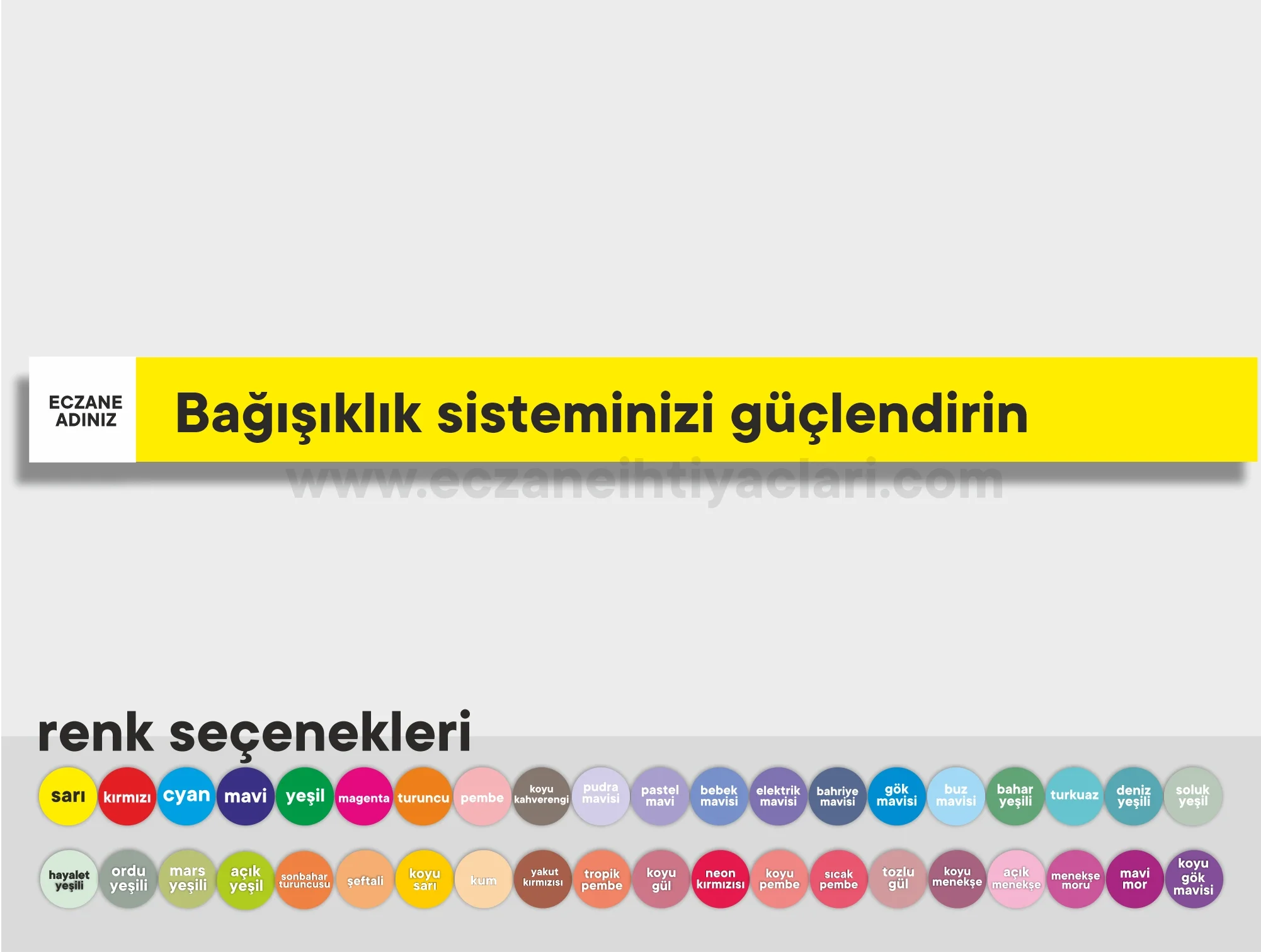 3.9x50cm ebatinda eczanenize özel raf yazısı, Raf boyutunuza göre istediğiniz ölçüde ve dilediğiniz renkte hazırlanabilir.