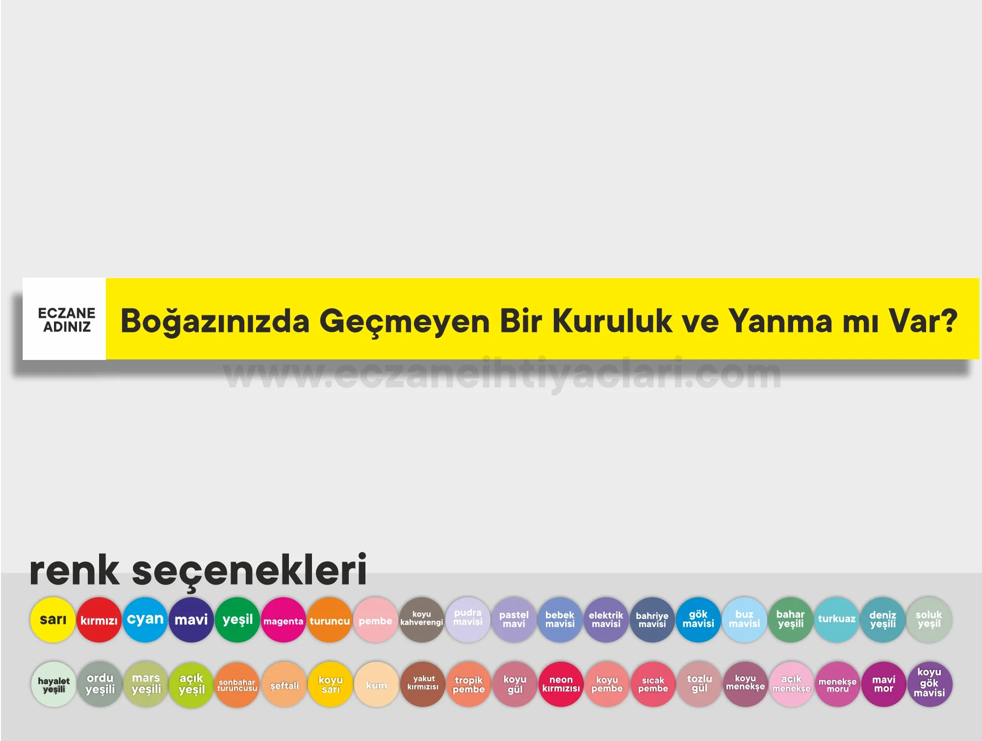 3.9x50cm ebatinda eczanenize özel raf yazısı, Raf boyutunuza göre istediğiniz ölçüde ve dilediğiniz renkte hazırlanabilir.