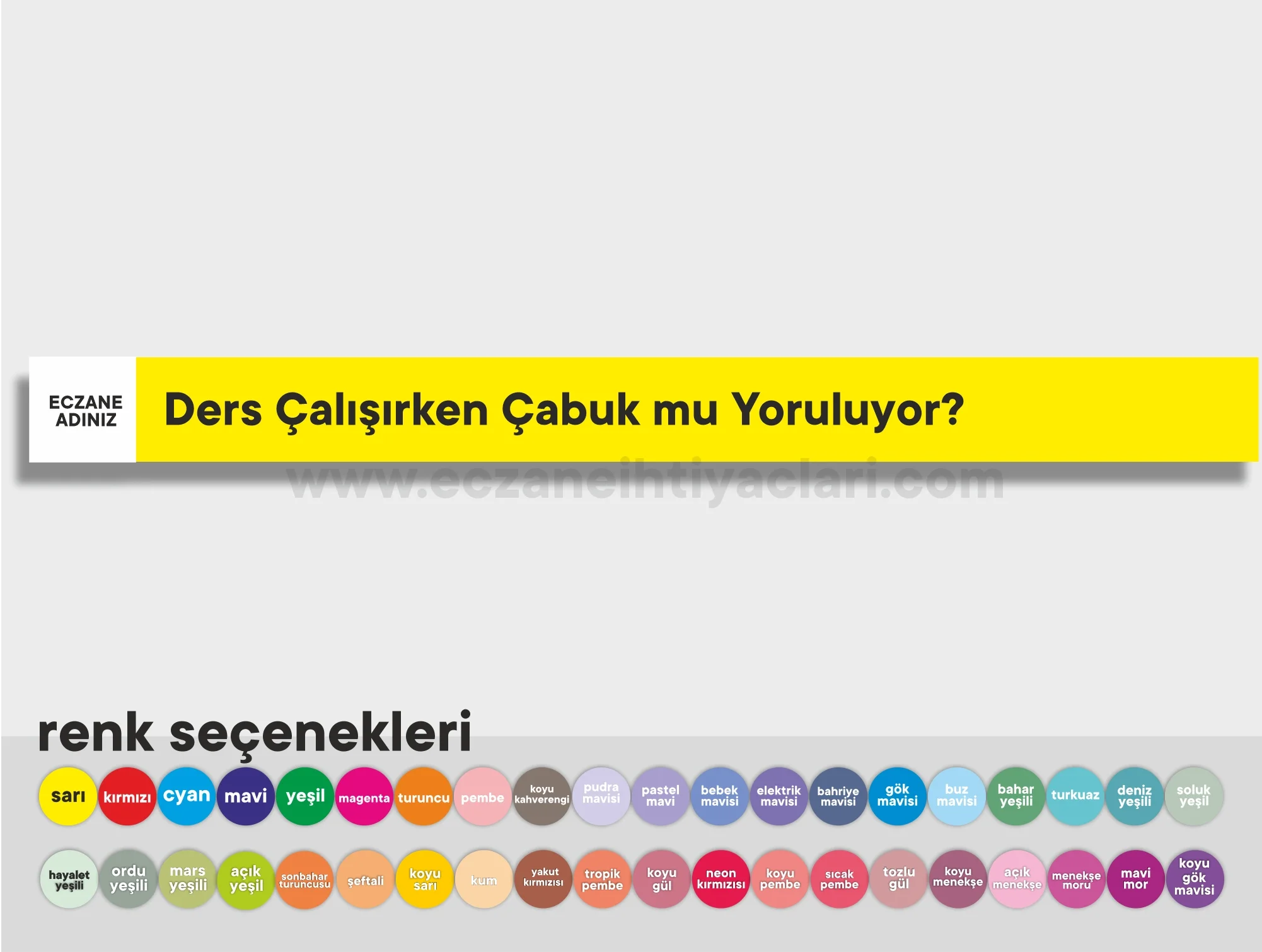 3.9x50cm ebatinda eczanenize özel raf yazısı, Raf boyutunuza göre istediğiniz ölçüde ve dilediğiniz renkte hazırlanabilir.