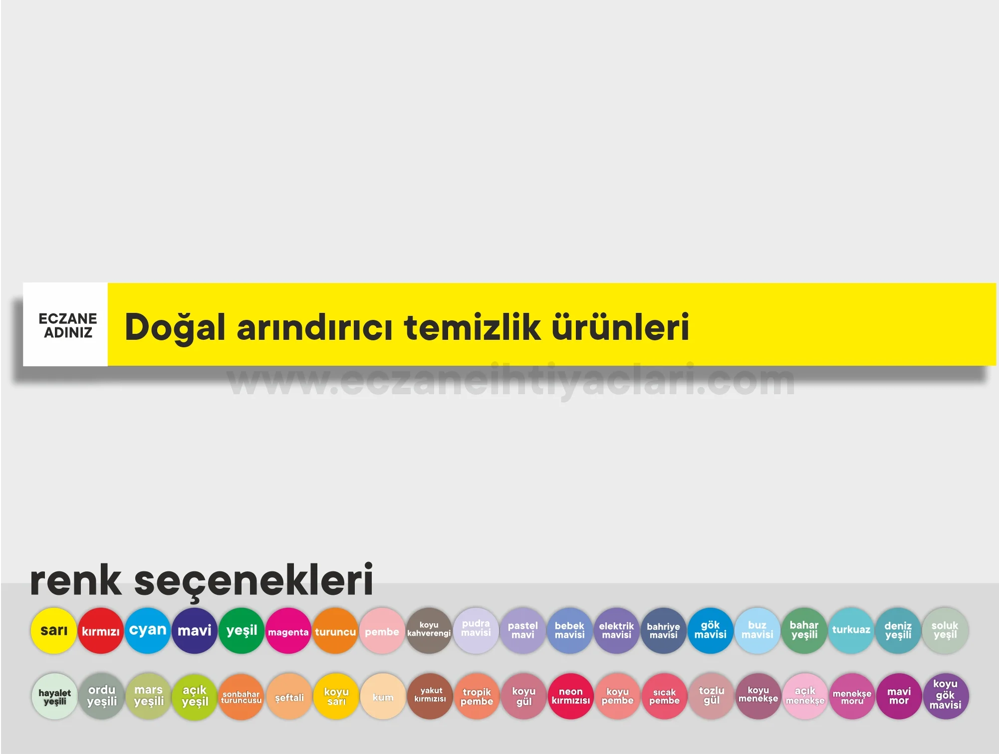 3.9x50cm ebatinda eczanenize özel raf yazısı, Raf boyutunuza göre istediğiniz ölçüde ve dilediğiniz renkte hazırlanabilir.