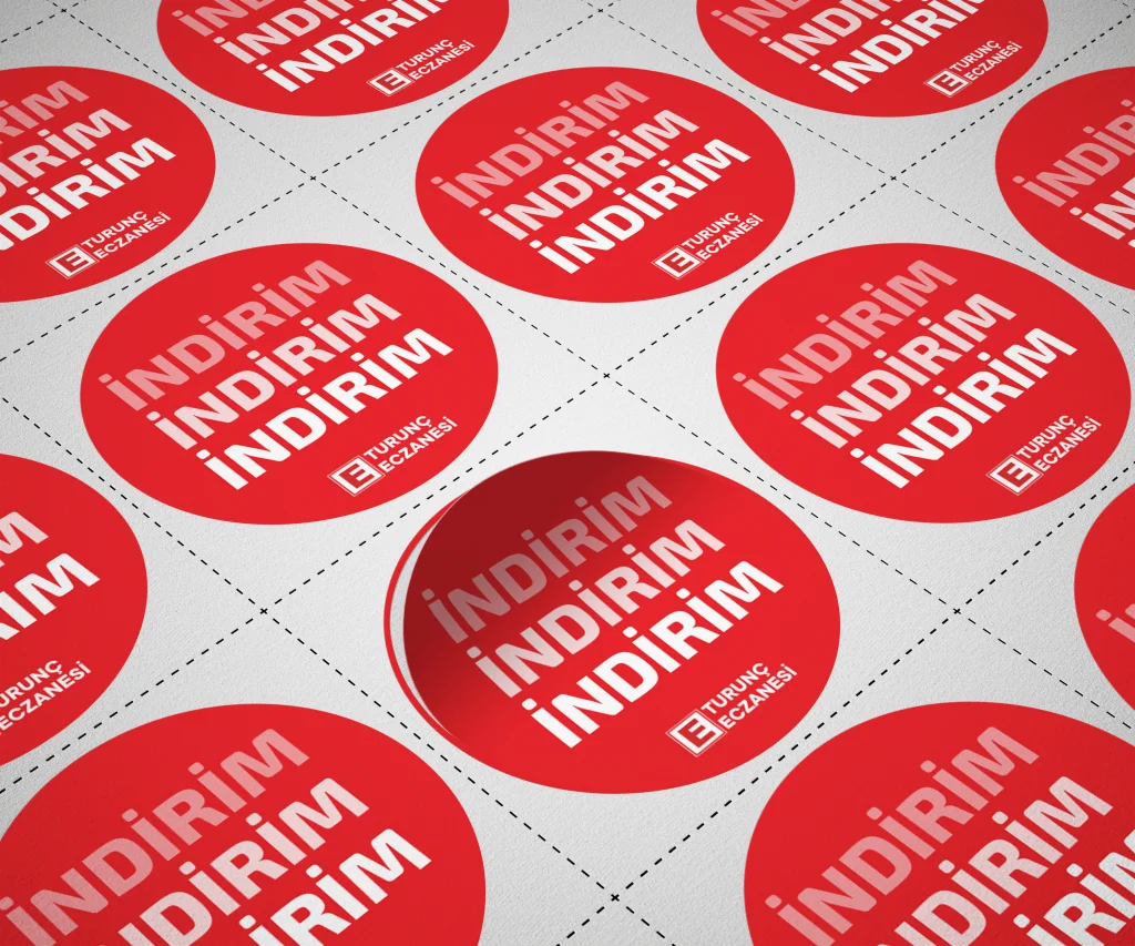 4x4 cm ölçülerindeki bu özel tasarım indirim etiketi, eczane isminiz veya logonuzla kişiselleştirilir. Gıda takviyeleri, dermokozmetik ürünler, kampanyalı ürünler ve raf etiketlemeleri için idealdir.