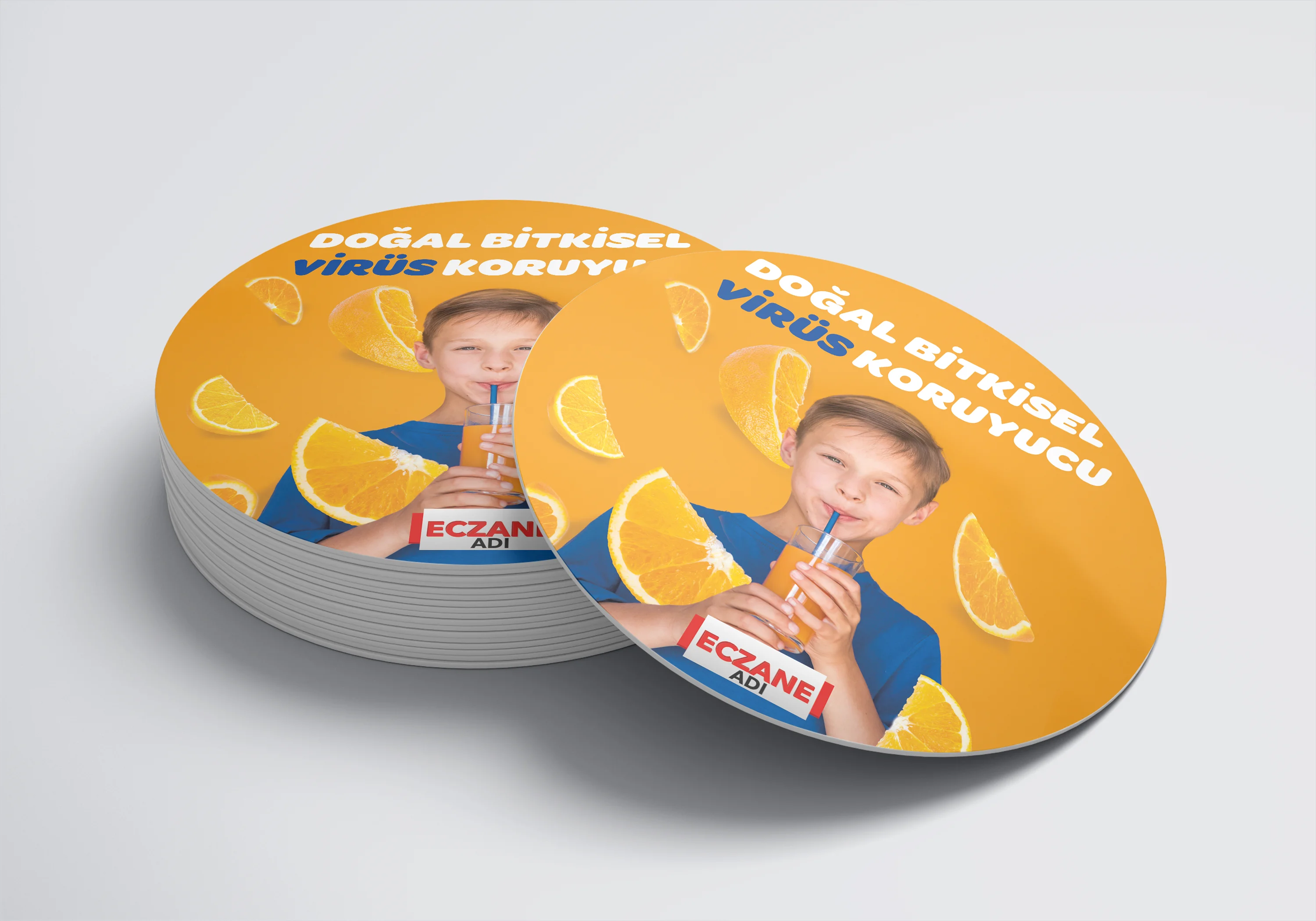 Eczanenize Özel dönkart daire şeklinde, 35x35 cm ebatında ve ön-arka yüzü baskılı şekilde üretilmektedir.