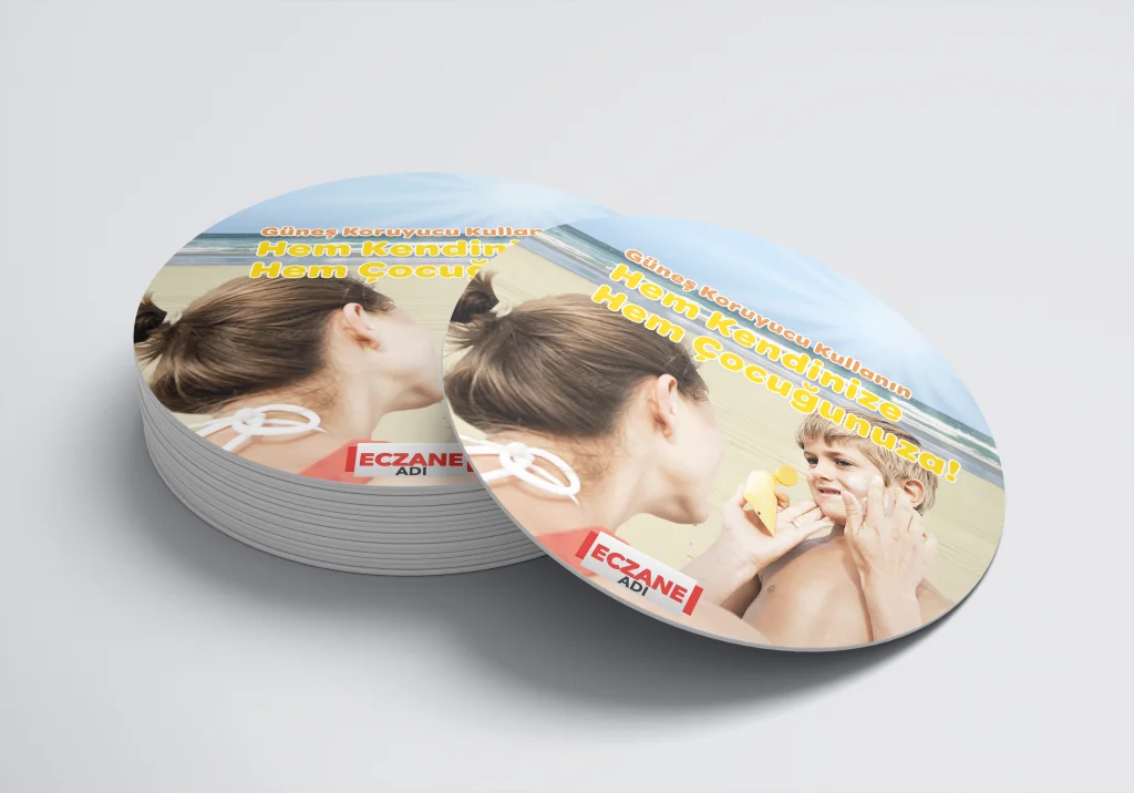 Eczanenize Özel dönkart daire şeklinde, 35x35 cm ebatında ve ön-arka yüzü baskılı şekilde üretilmektedir.