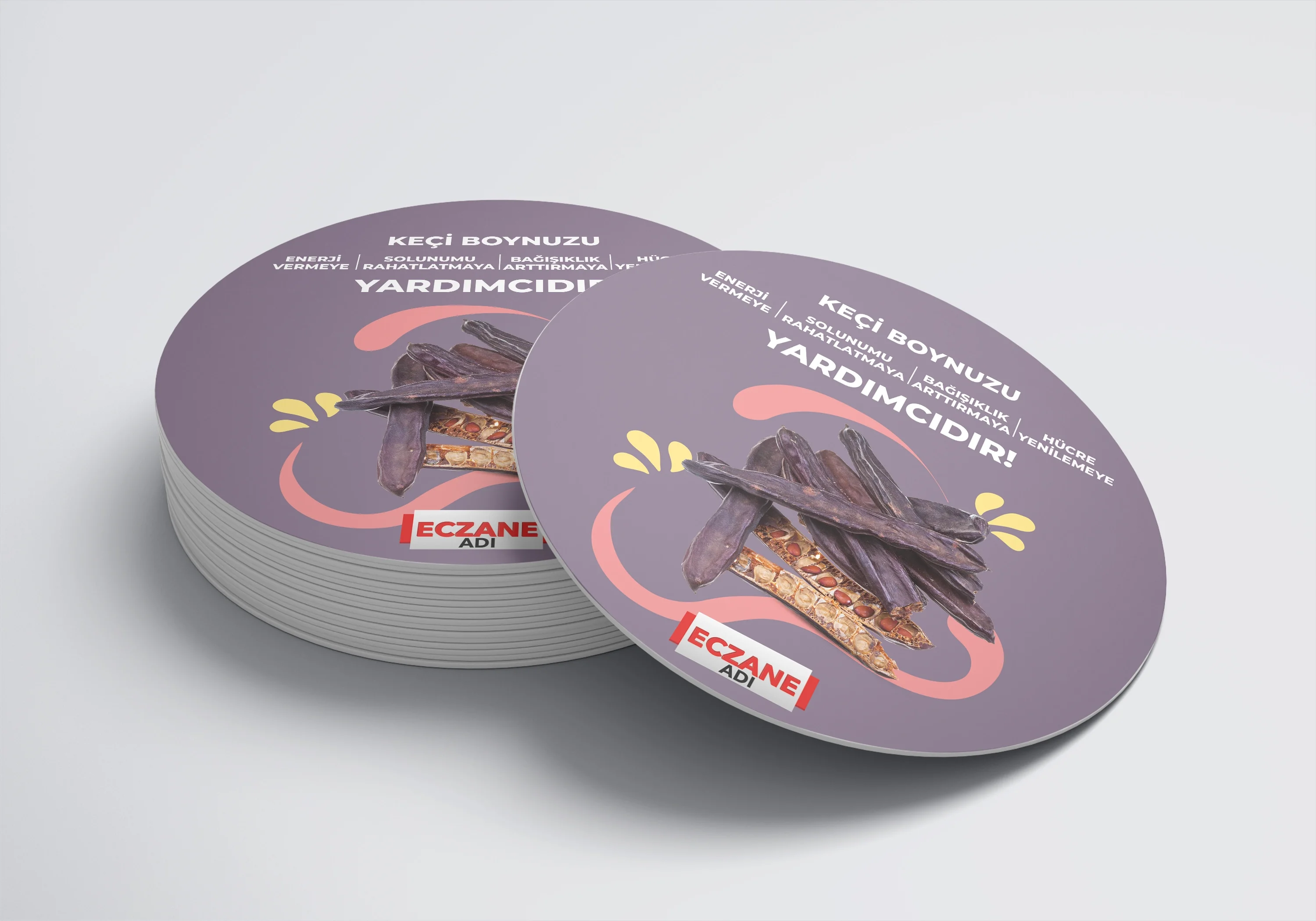 Eczanenize Özel dönkart daire şeklinde, 35x35 cm ebatında ve ön-arka yüzü baskılı şekilde üretilmektedir.