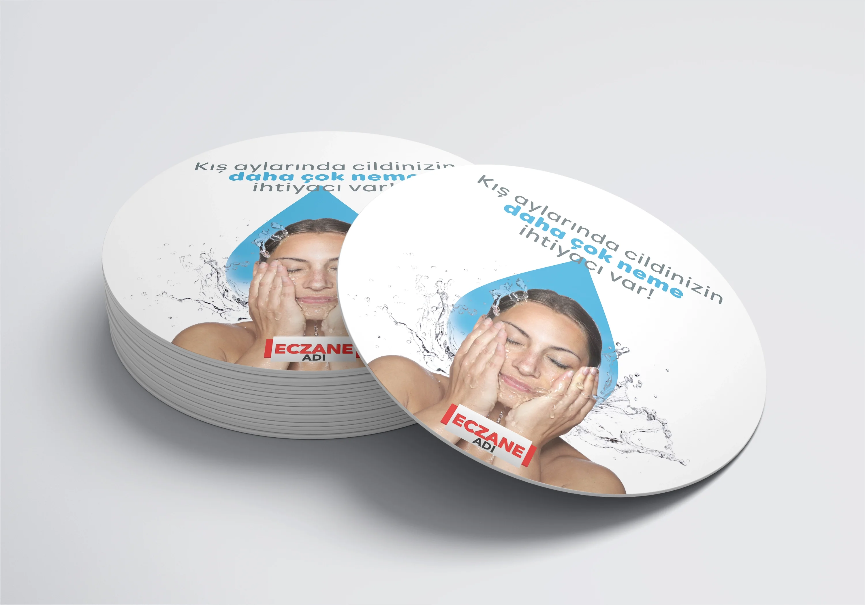Eczanenize Özel dönkart daire şeklinde, 35x35 cm ebatında ve ön-arka yüzü baskılı şekilde üretilmektedir.