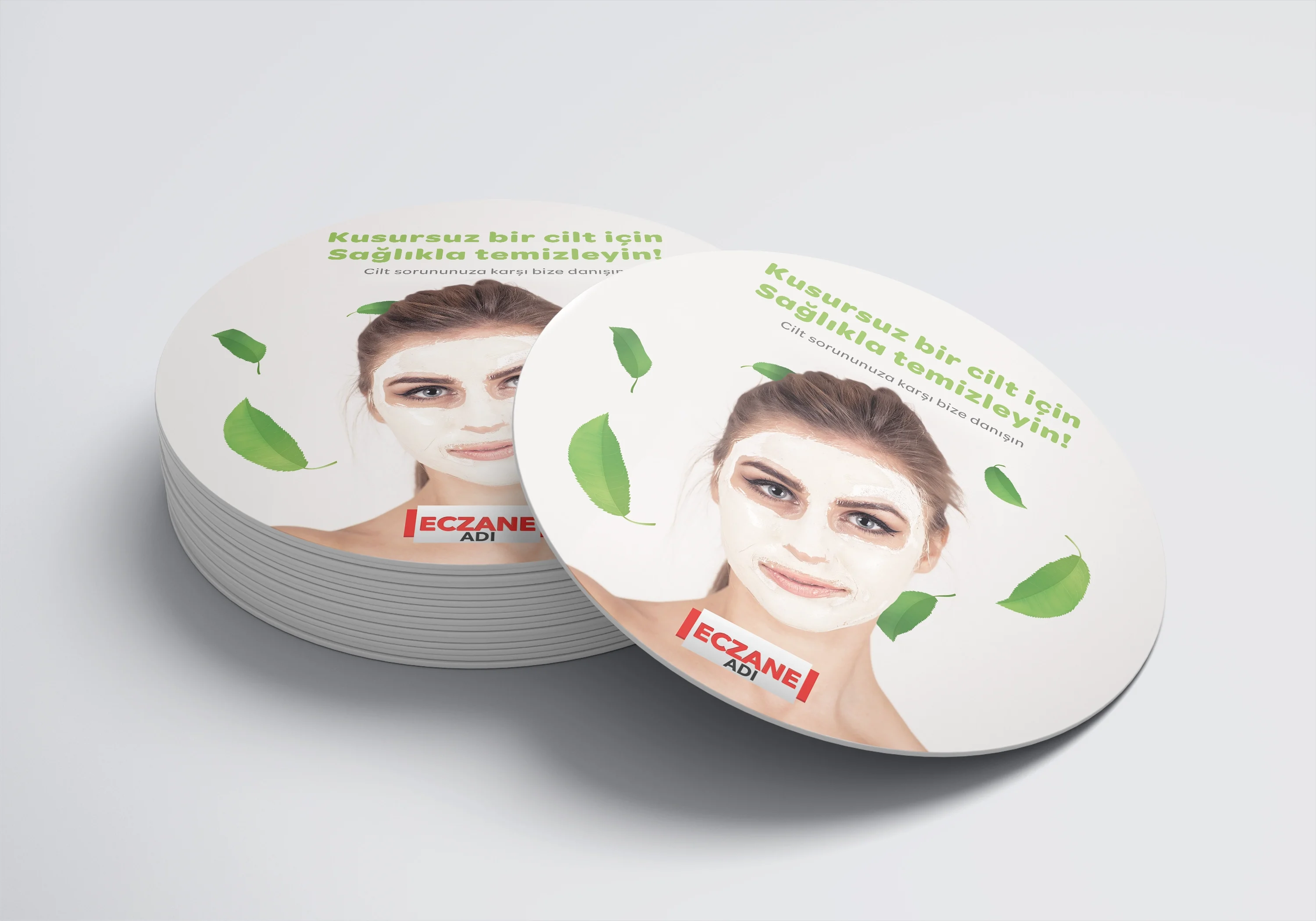 Eczanenize Özel dönkart daire şeklinde, 35x35 cm ebatında ve ön-arka yüzü baskılı şekilde üretilmektedir.
