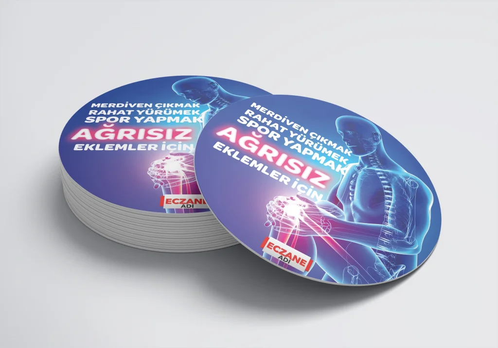 Eczanenize Özel dönkart daire şeklinde, 35x35 cm ebatında ve ön-arka yüzü baskılı şekilde üretilmektedir.