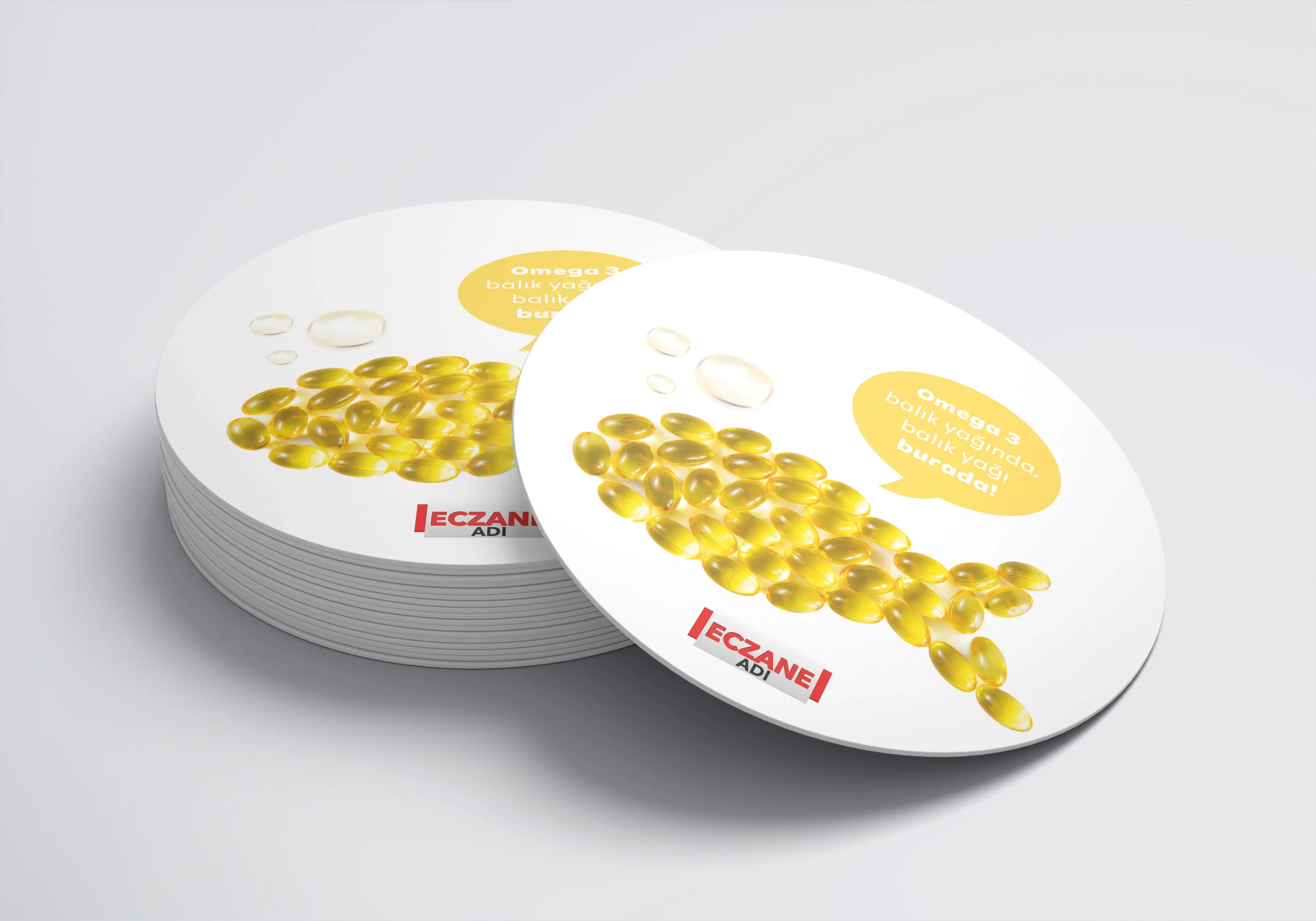Eczanenize Özel dönkart daire şeklinde, 35x35 cm ebatında ve ön-arka yüzü baskılı şekilde üretilmektedir.