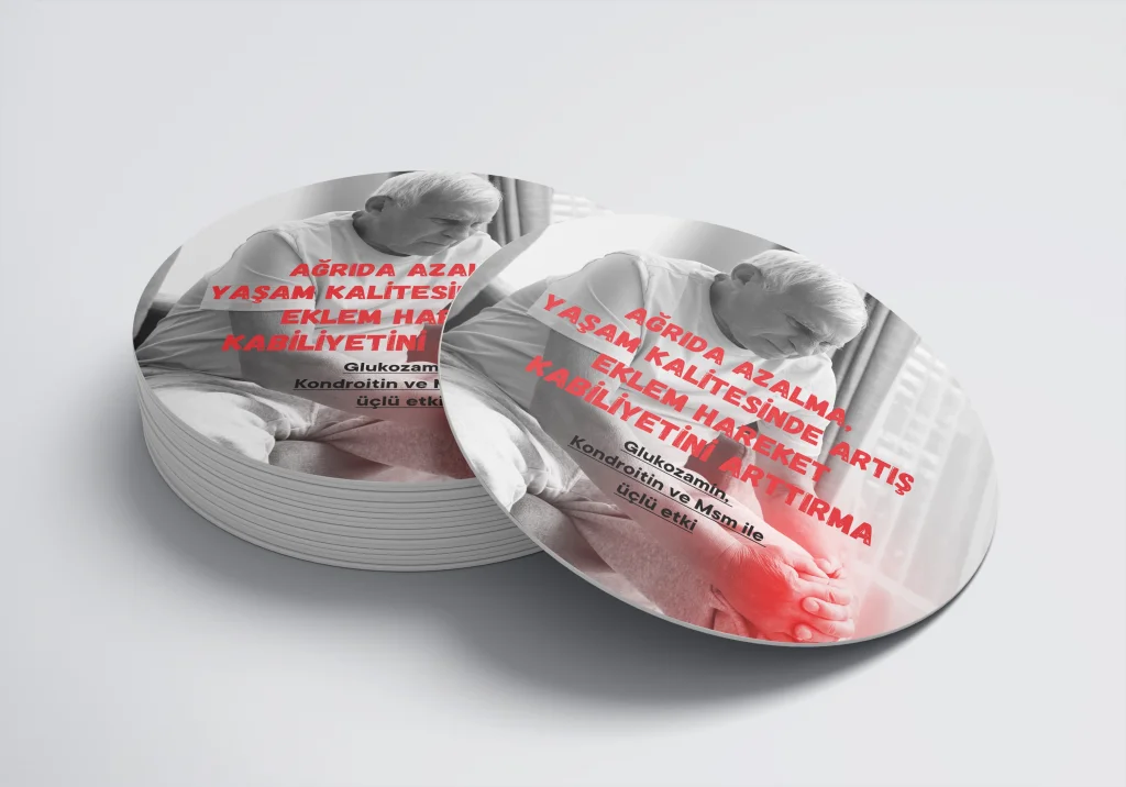Eczanenize Özel dönkart daire şeklinde, 35x35 cm ebatında ve ön-arka yüzü baskılı şekilde üretilmektedir. Dönkartların üst tarafında ip ile kullanılmasına imkan veren bir delik bulunmakta ürünler ipleriyle ve vantuzla beraber gönderilmektedir.