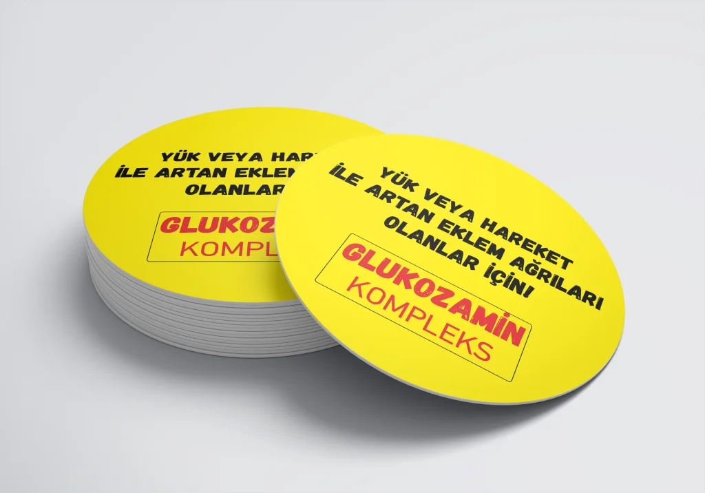 Eczanenize Özel dönkart daire şeklinde, 35x35 cm ebatında ve ön-arka yüzü baskılı şekilde üretilmektedir. Dönkartların üst tarafında ip ile kullanılmasına imkan veren bir delik bulunmakta ürünler ipleriyle ve vantuzla beraber gönderilmektedir.