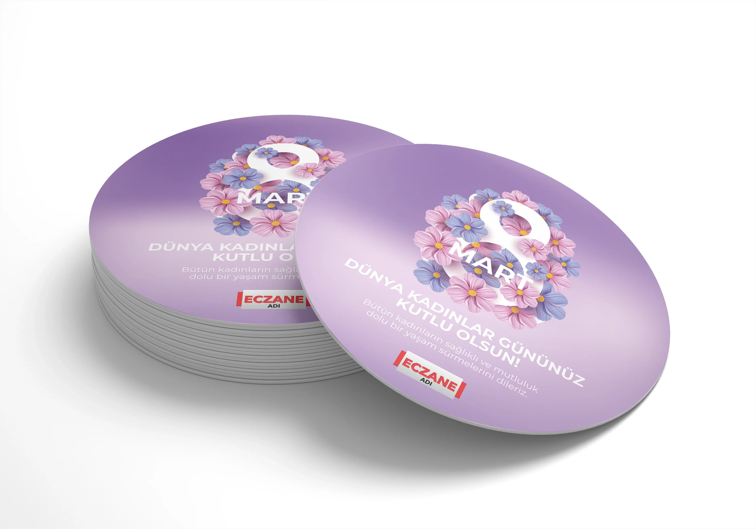 Eczanenize Özel dönkart daire şeklinde, 35x35 cm ebatında ve ön-arka yüzü baskılı şekilde üretilmektedir.