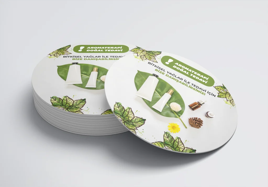 Eczanenize Özel dönkart daire şeklinde, 35x35 cm ebatında ve ön-arka yüzü baskılı şekilde üretilmektedir.