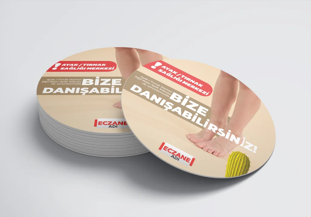 Eczanenize Özel dönkart daire şeklinde, 35x35 cm ebatında ve ön-arka yüzü baskılı şekilde üretilmektedir.