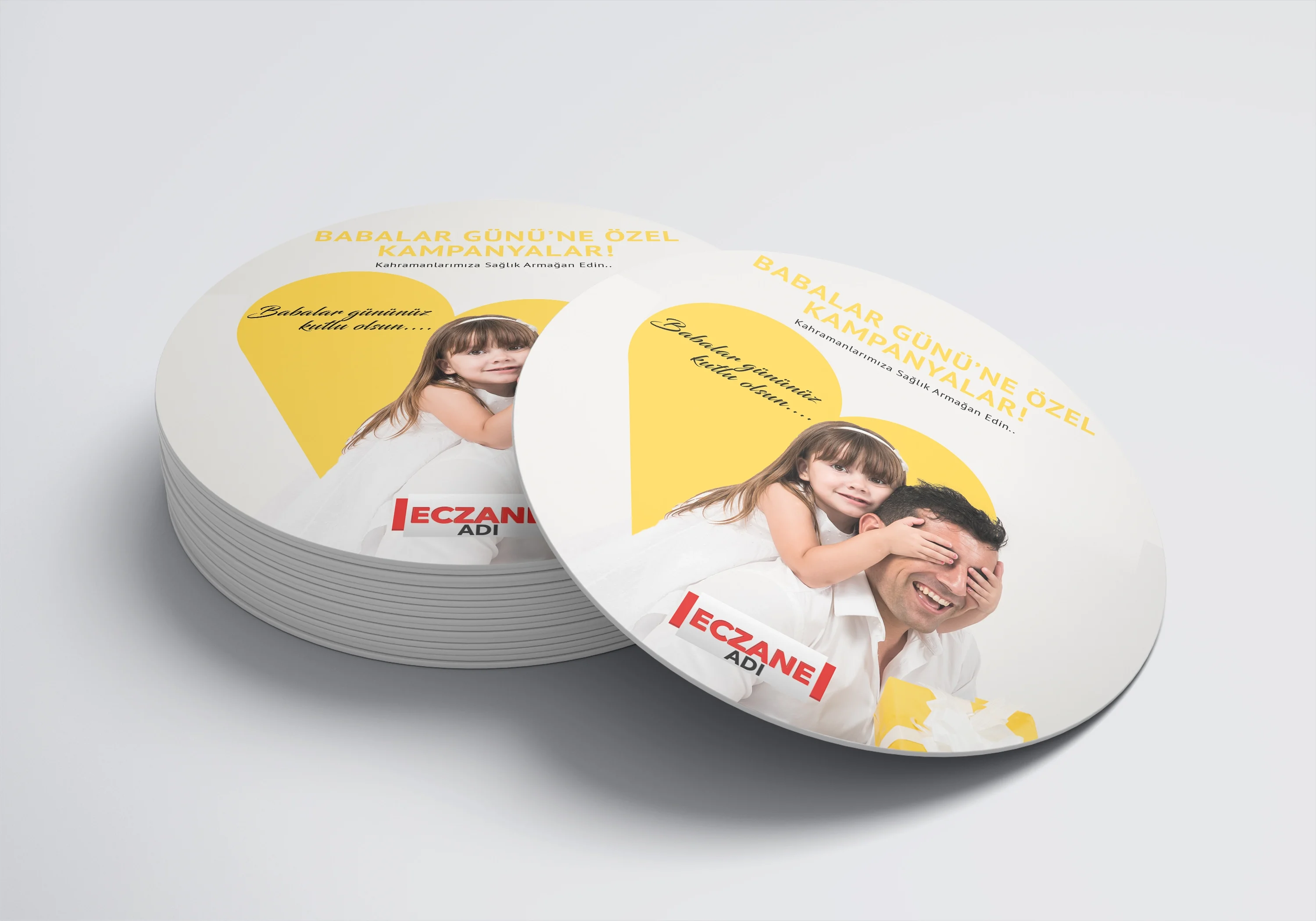 Eczanenize Özel dönkart daire şeklinde, 35x35 cm ebatında ve ön-arka yüzü baskılı şekilde üretilmektedir.
