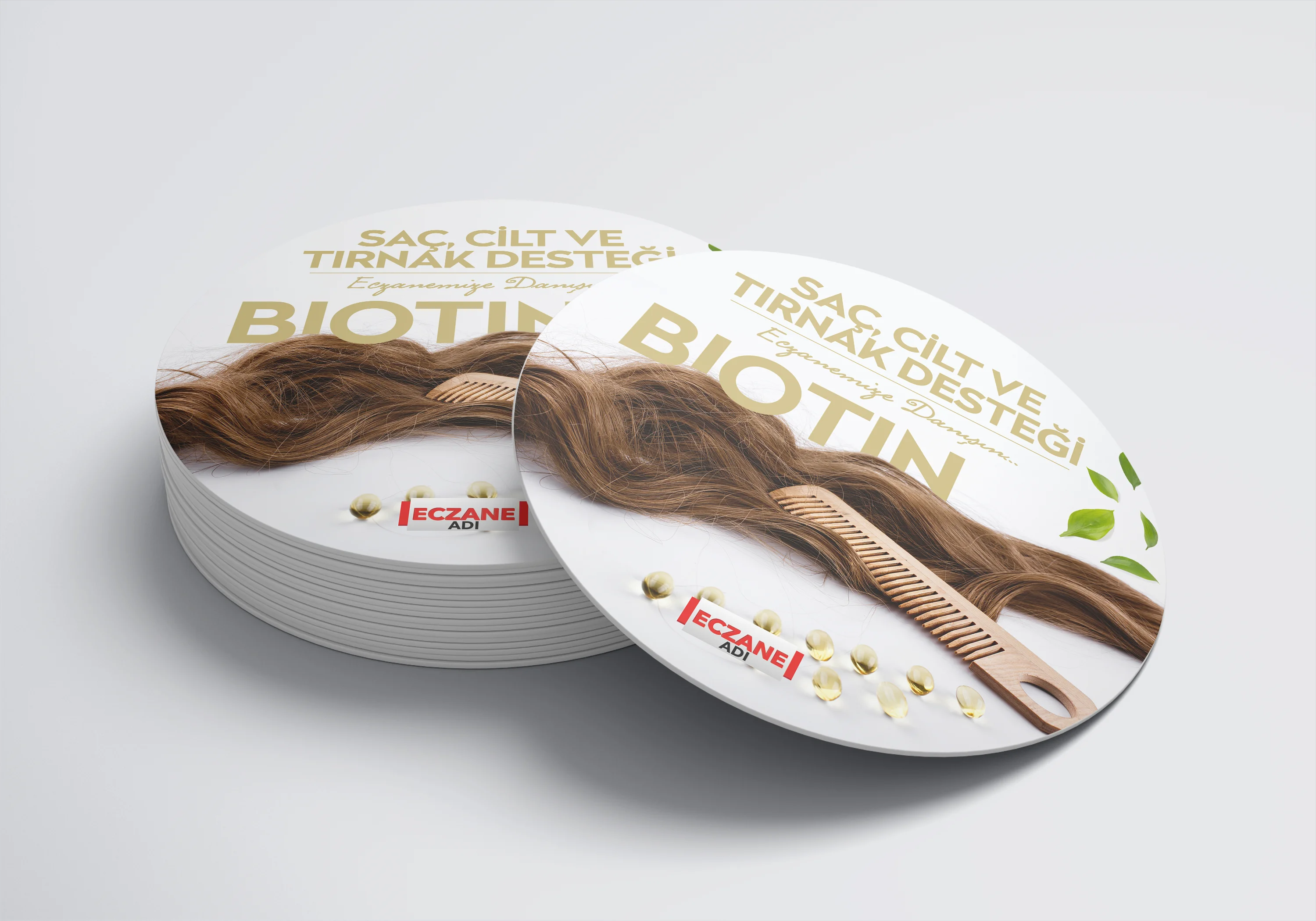 Eczanenize Özel dönkart daire şeklinde, 35x35 cm ebatında ve ön-arka yüzü baskılı şekilde üretilmektedir.