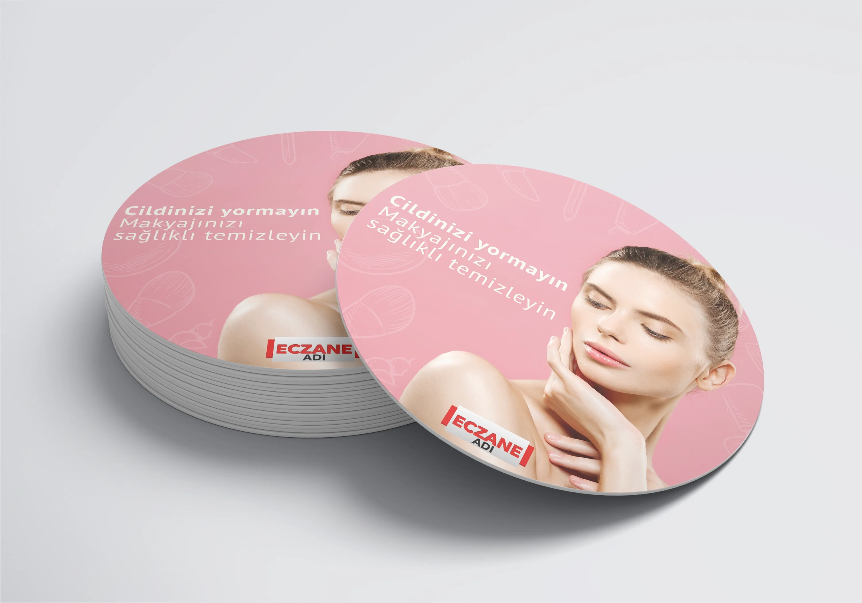Eczanenize Özel dönkart daire şeklinde, 35x35 cm ebatında ve ön-arka yüzü baskılı şekilde üretilmektedir.