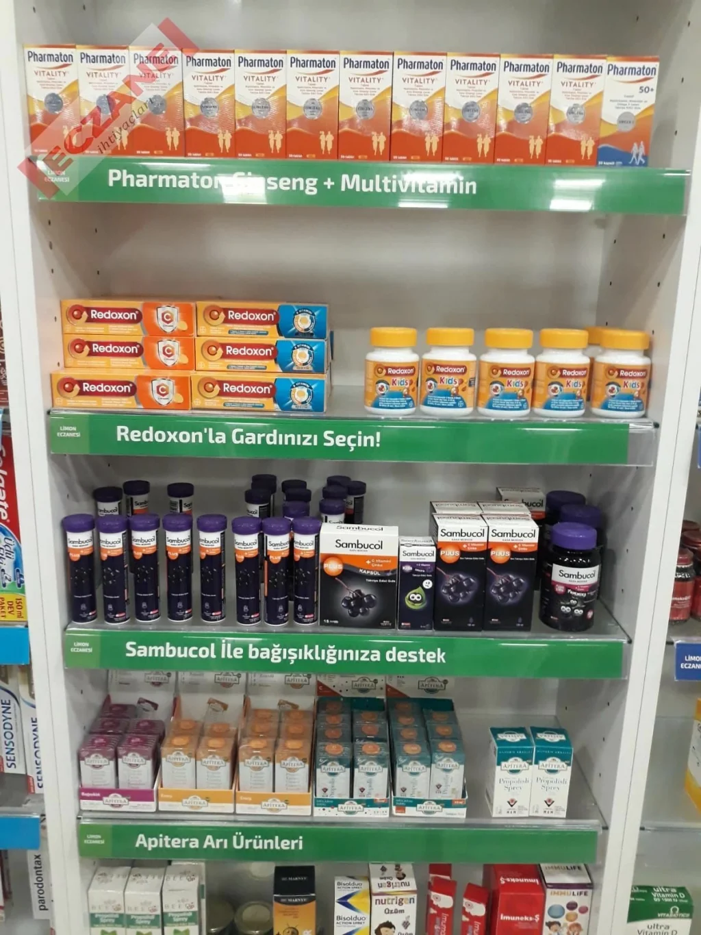 50 x 3,9cm boyutunda Eczane isminizin yer aldığı ,Raf kategori yazısı, 1. Kalite baskı ,Renk ve boyut için