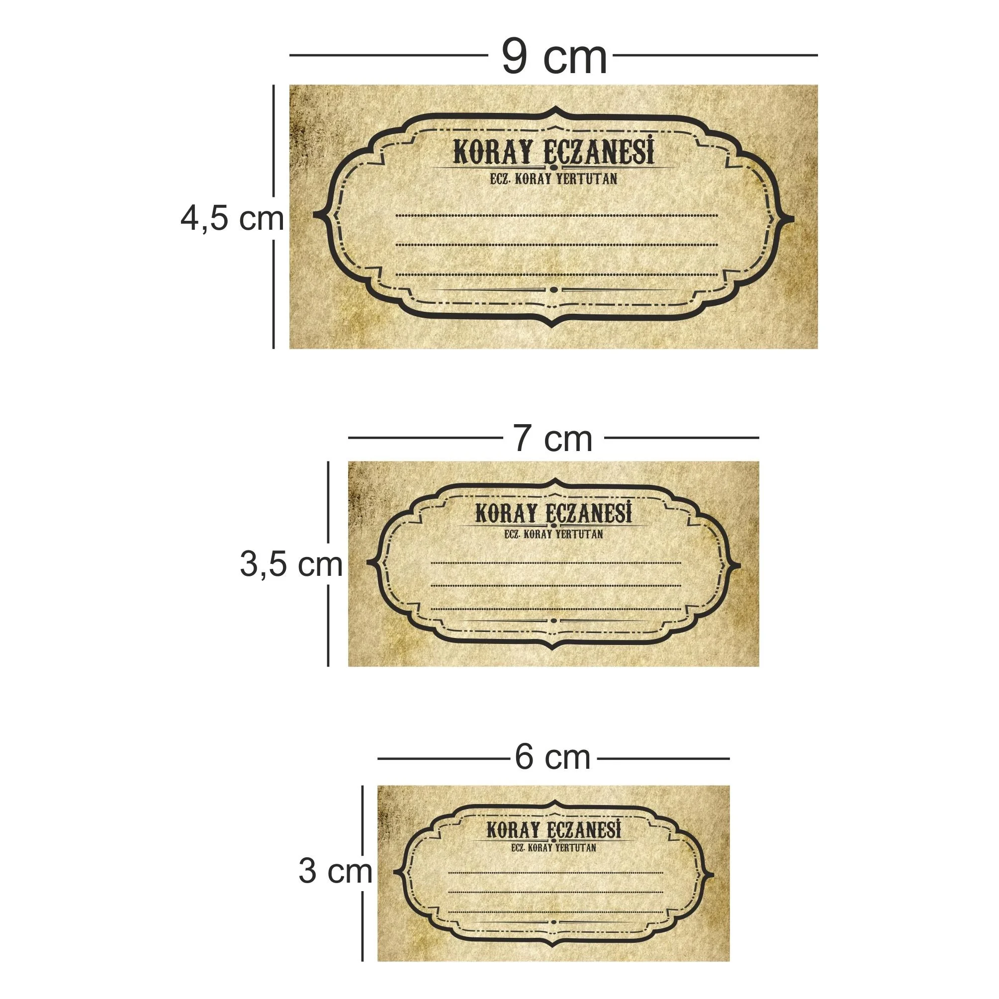 1000 adet 9 x 4,5 cm 650 adet: 7 x 3,5 cm 750 adet 6 x 3 cm ölçülerinde üretim yapılır