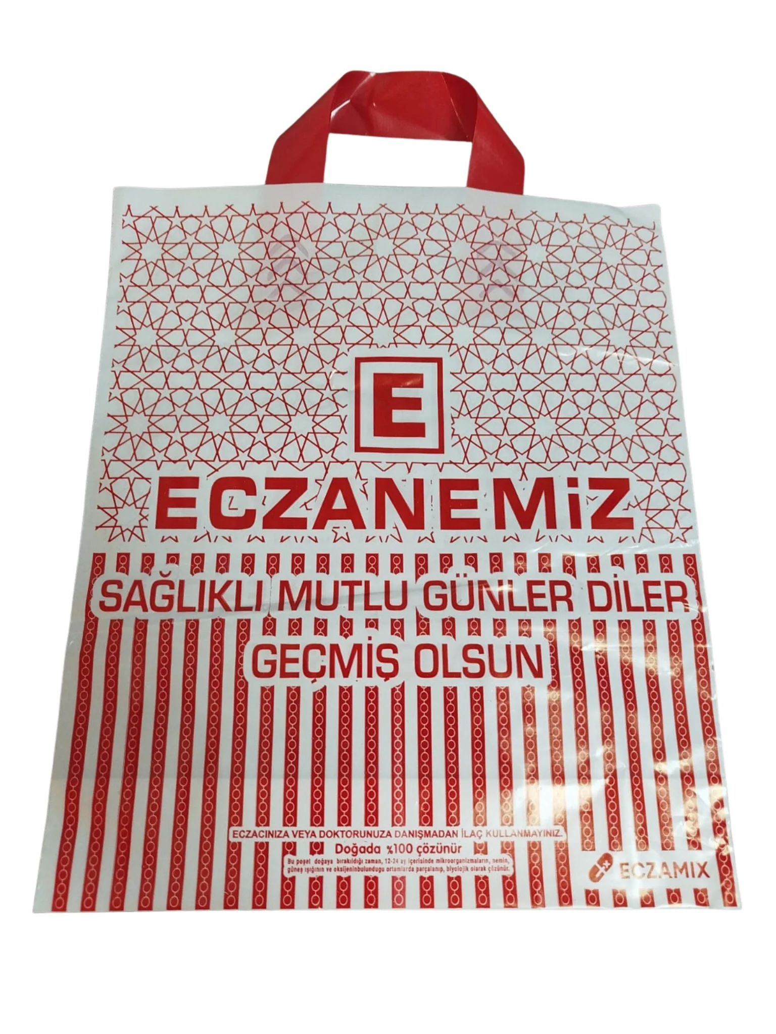 30*35cm ebatında yumuşak saplı eczane poşeti